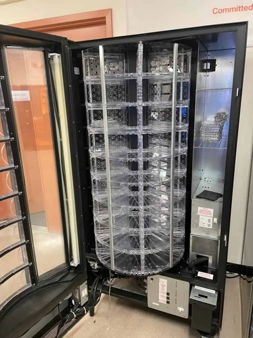 - 9 shopping windows with turning drum that allows for full visual view, allowing consumers to shop for product